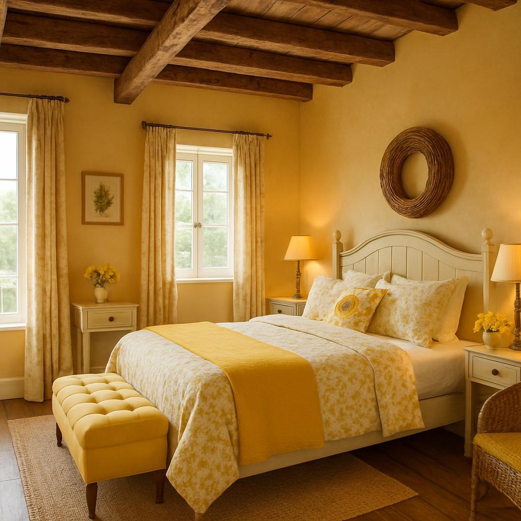The Yellow Room is located on the ground floor at the peaceful rear of the farmhouse, offering maximum privacy and a relaxed atmosphere. Ideal for longer stays.